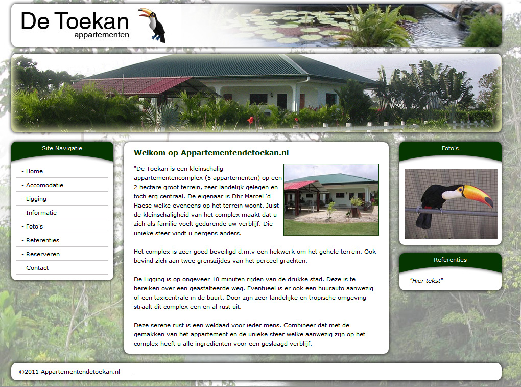 Om de verhuur van appartementen te vergroten is er voor Appartementen "De Toekan" een website opgezet. Voorheen werden alle huisjes verhuurd via mond op mond reclame. Er werden geen andere middelen ingezet.