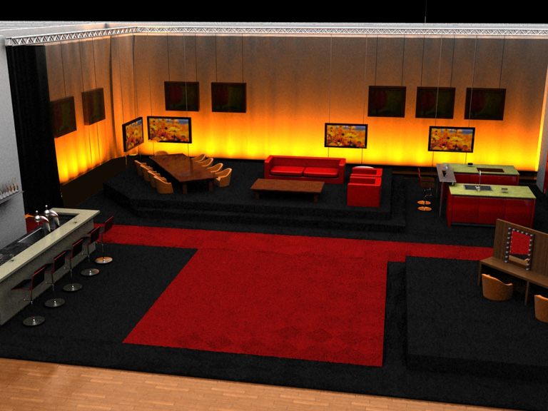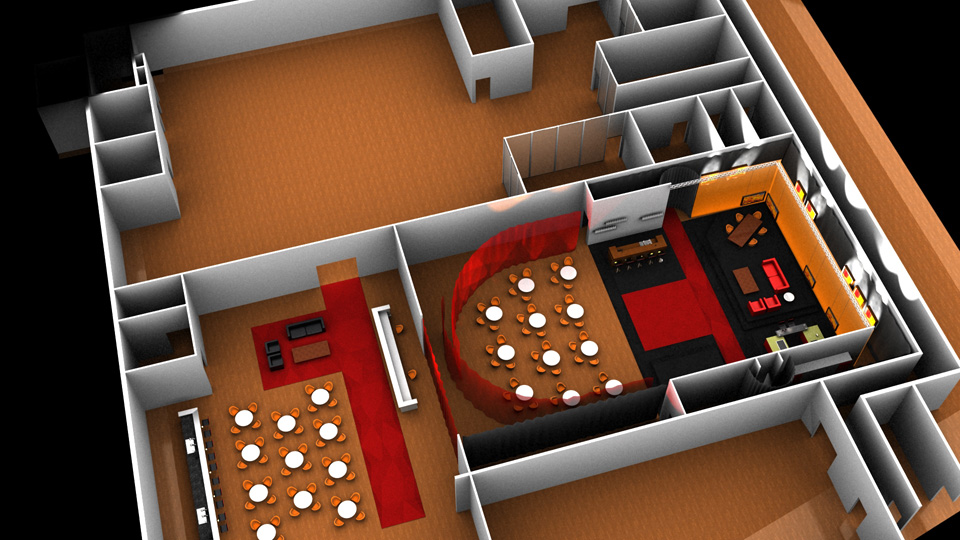 Om TV Limburg een goed beeld te geven van hoe ze hun studio moesten indelen heb ik hiervoor een 3D model gemaakt. In dit model hebben we de indeling van de studio in grote lijnen kunnen bepalen. Daarnaast heb ik een beeld kunnen schetsen van hoe verlichting aangebracht moest worden.